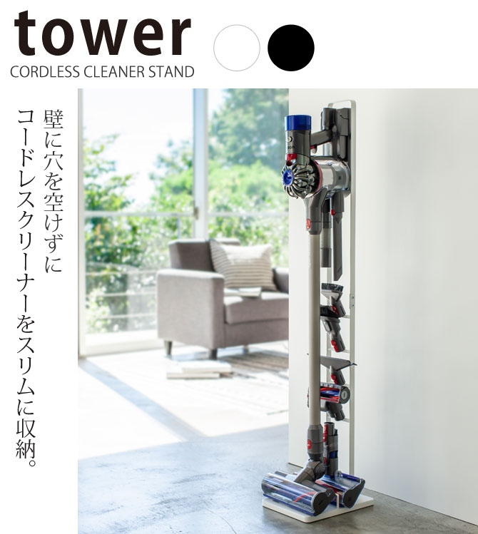 ダイソン 掃除機 スタンド dyson 収納 掃除機ストッカー コードレスクリーナースタンド タワー シンプル お洒落 ホワイト ブラック 山崎実業 白い 黒 yamazaki モダン 片付け 整理整頓 メーカー直送