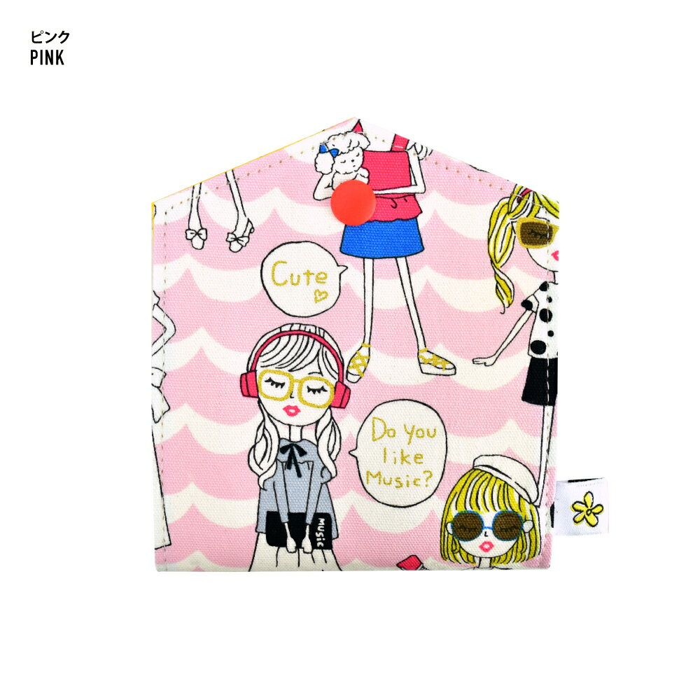 マスクケース マスク収納 レディース 女子 安心の日本製 綿 おしゃべりガールズ柄 抗菌/防臭 携帯 持ち運び 折りたたみ 二つ折り 仮置き外出 食事中 一時保管 ホルダー ファッション 小物 和装小物 浴衣小物 レトロ 大人 大学生 高校生 ママ 子供 単品 かわいい おしゃれ