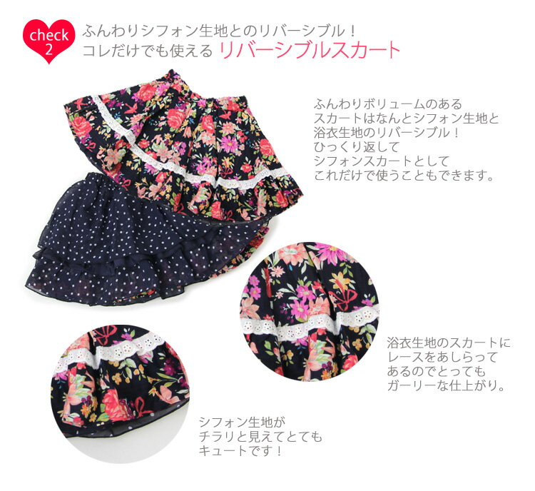 浴衣・甚平としてはもちろん、上着を脱げばスカートとしても使えますよ。