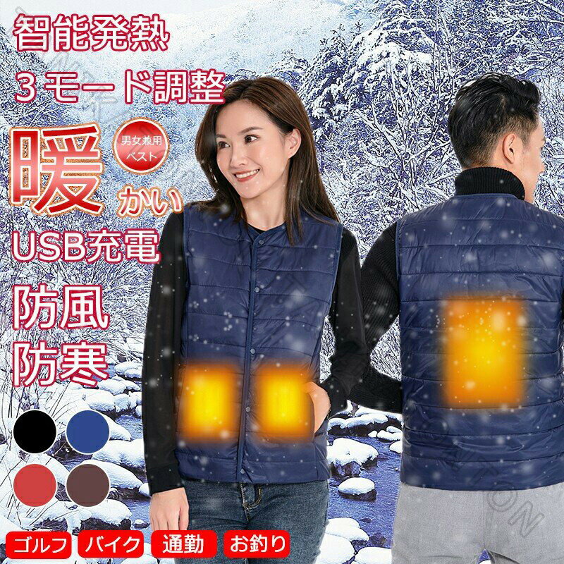 電熱ベスト 大きいサイズ ヒーター内蔵 ベスト ヒート ベスト 電熱ジャケット 防寒ベスト 電熱ウェア USB 加熱 男女兼用 水洗いでき 3段温度調整 登山 釣り 生理 に対応 防寒着【楽天海外直送】