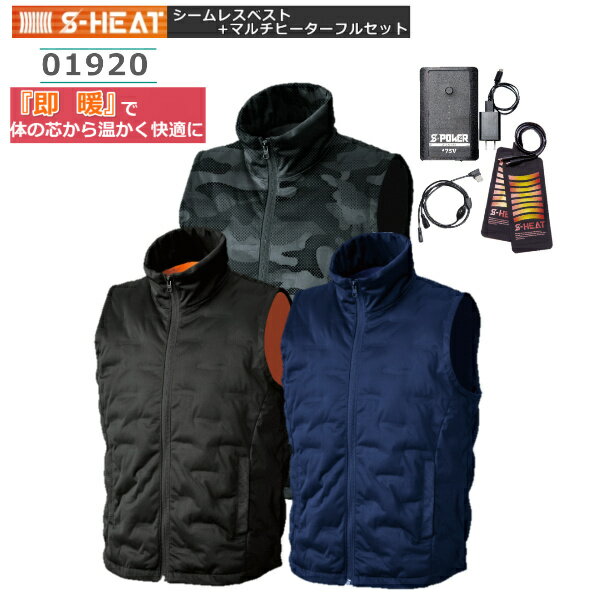 【ポイント10倍】電熱べストUSB あす楽ヒートベスト ヒーターベスト 01920 マルチヒーターフルセット S-HEAT USB ヒートべスト大きいサイズ 充電式ベスト 電熱ウエア 防寒着 暖房 アウトドアゴルフ 釣りキャンプ スキー