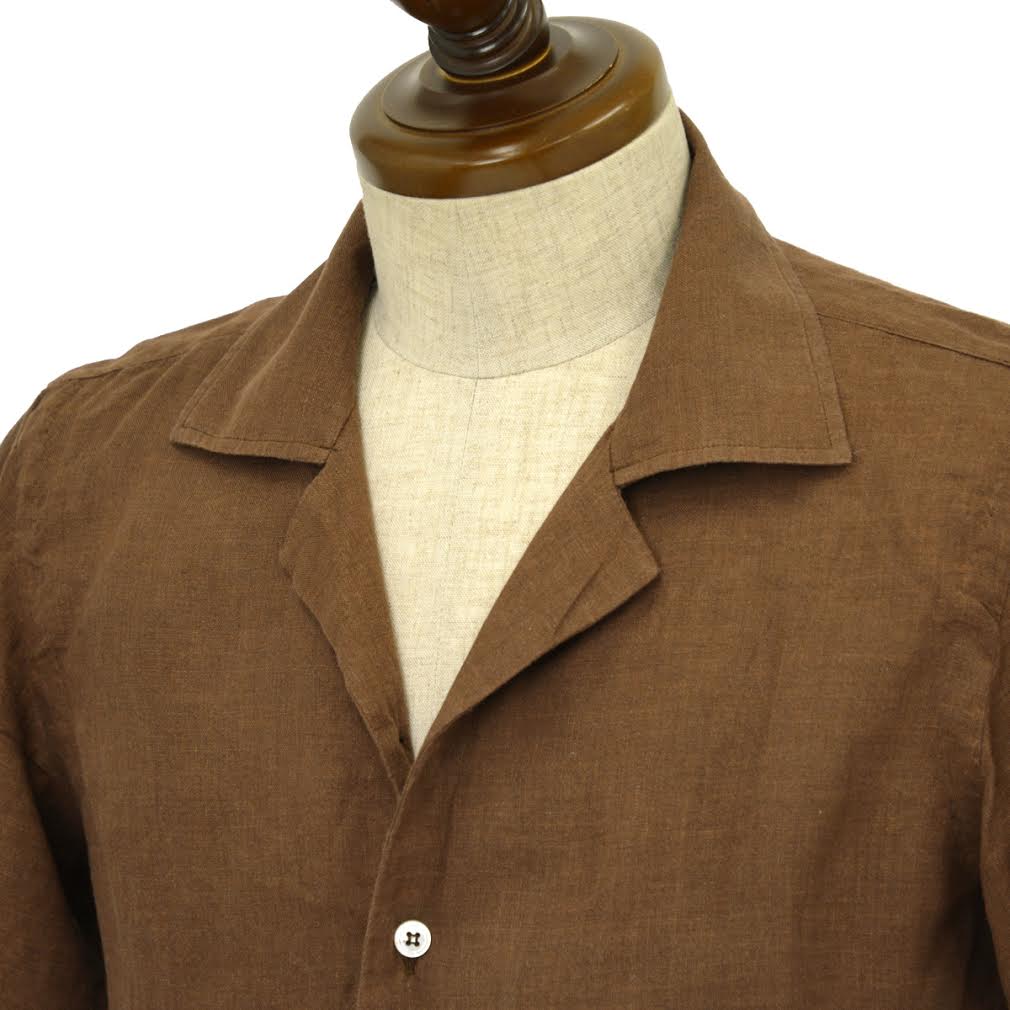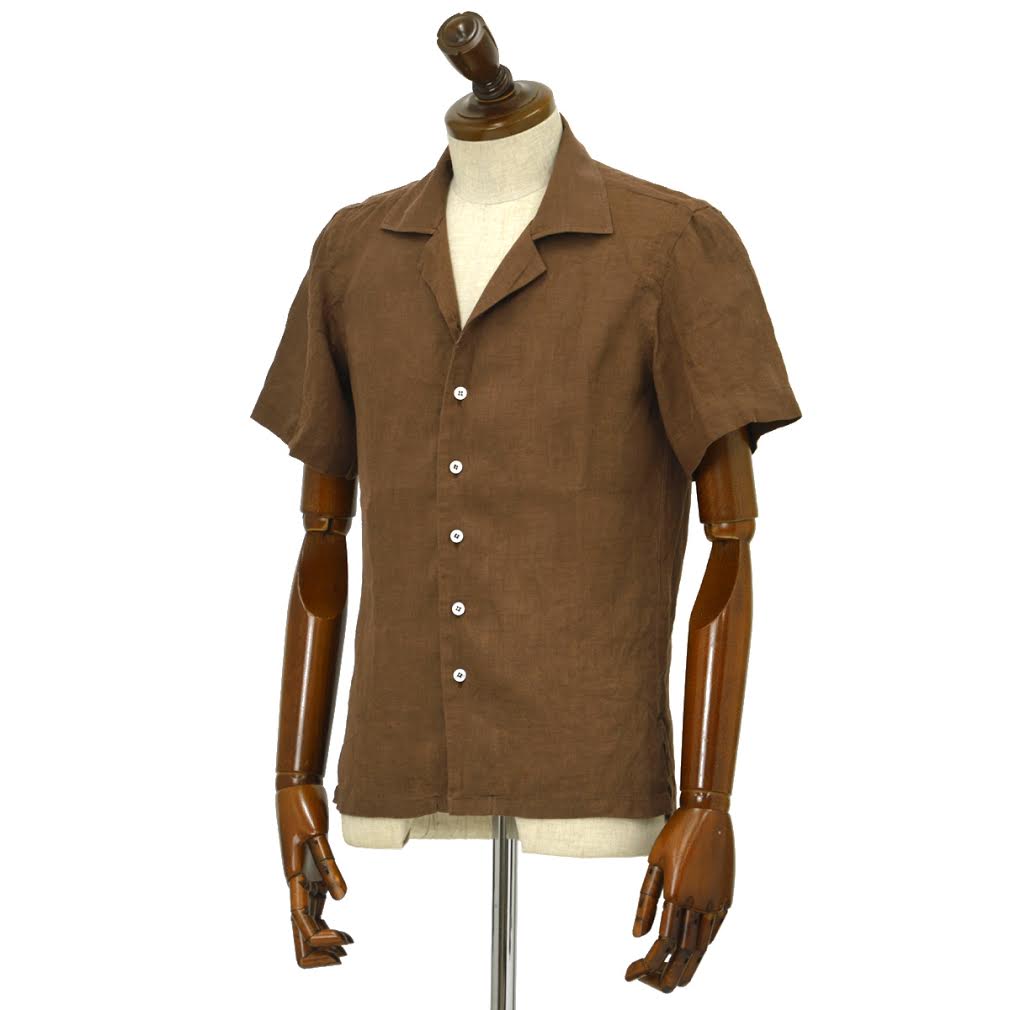 Mario Muscariello【マリオムスカリエッロ】オープンカラーシャツ HONOLULU R2MC0146 リネン ブラウン