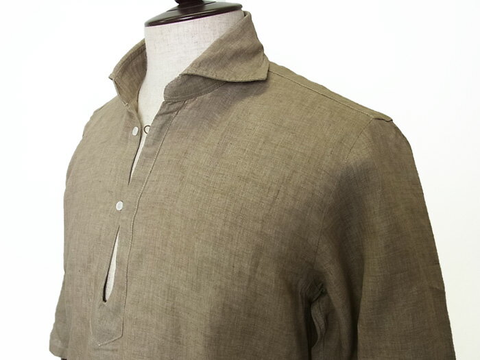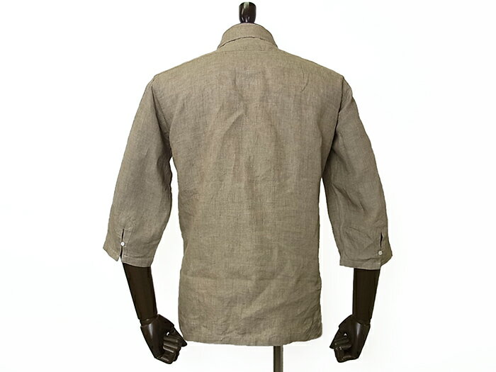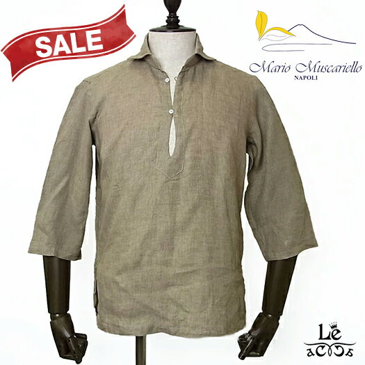 【New Arrival】Mario Muscariello マリオ ムスカリエッロ リネン カプリシャツ 麻 七分袖 無地 ブラウン ベージュ メンズ イタリア製 春夏モデル 国内正規品 28600【送料無料】