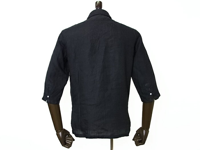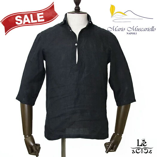 【New Arrival】Mario Muscariello マリオ ムスカリエッロ リネン カプリシャツ 麻 七分袖 無地 ブラック 黒 メンズ イタリア製 春夏モデル 国内正規品 28600【送料無料】