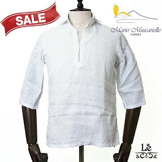 【New Arrival】Mario Muscariello マリオ ムスカリエッロ リネン カプリシャツ 麻 七分袖 無地 ホワイト 白 メンズ イタリア製 春夏モデル 国内正規品 28600【送料無料】