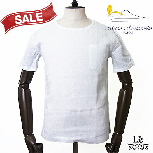 【New Arrival】Mario Muscariello マリオ ムスカリエッロ リネン Tシャツ 麻 半袖 無地 ホワイト 白 メンズ イタリア製 春夏モデル 国内正規品 28600【送料無料】